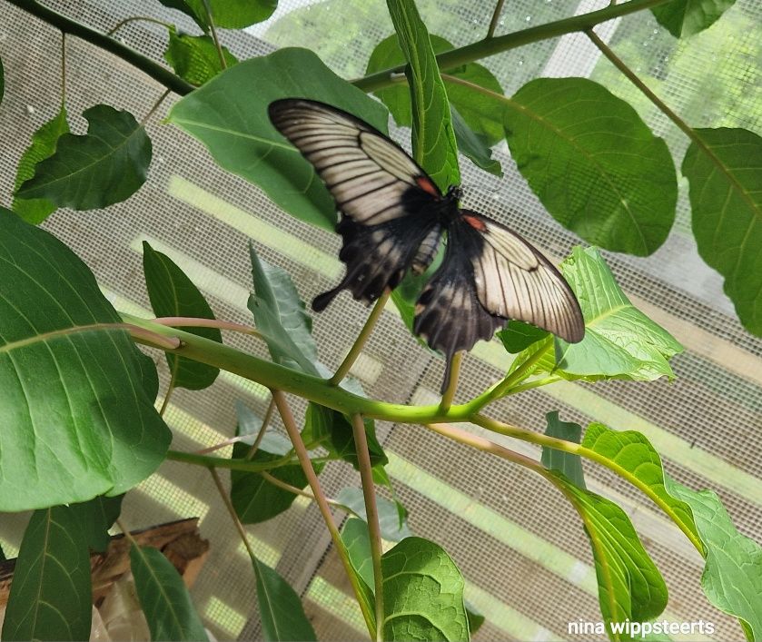 Es gibt zwei Bereiche, einmal den tropischen warm-feuchten, durch den wir auch die Führung bekamen, einen weiteren, der zum Verweilen einlädt, (aber auch recht warm ist) dazwischen auch hier Schmetterlinge.