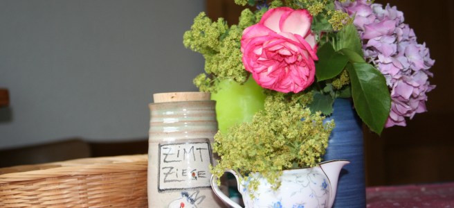 Es ist ja schon fast zu spät sie zu ernten. Holunderbeeren. In der Zeit unseres Urlaubs haben sich die Vögel drüber her gemacht. Sei ihnen von Herzen gegönnt. Denn um einiges an Saft für eine *Fliederbeersuppe* zusammen zu bekommen, müsste ich mindestens 750g Holunder – Flieder – beeren sammeln und kochend entsaften.