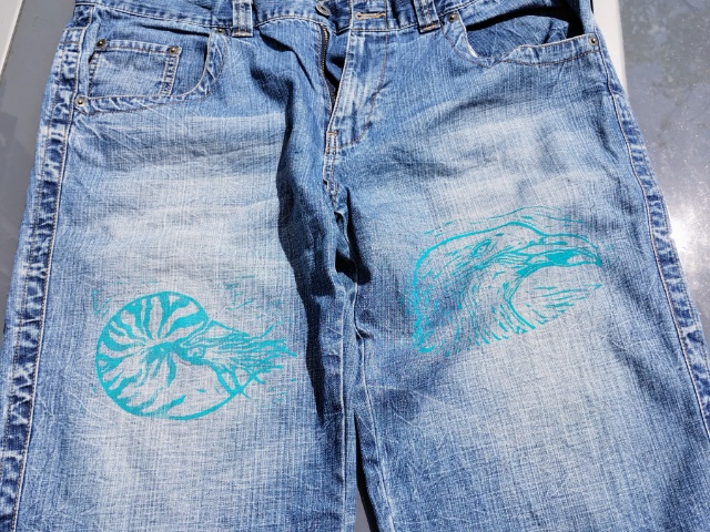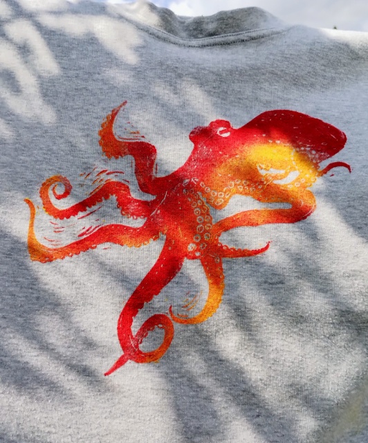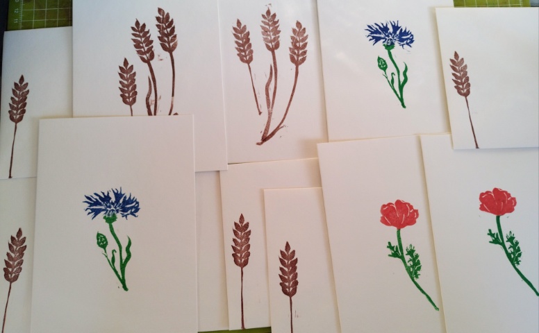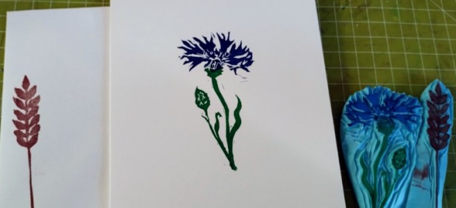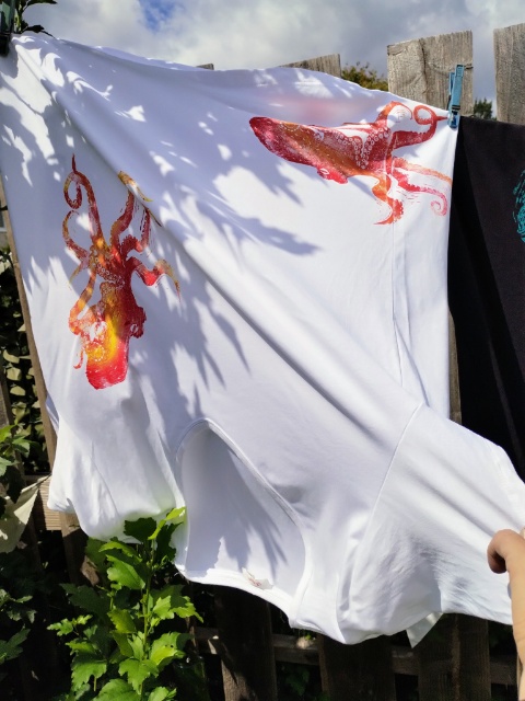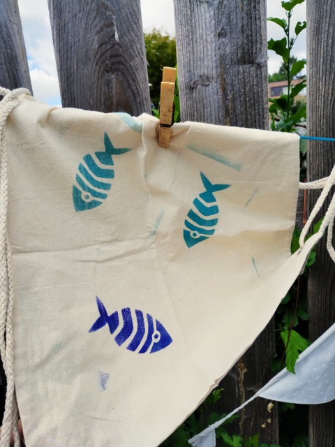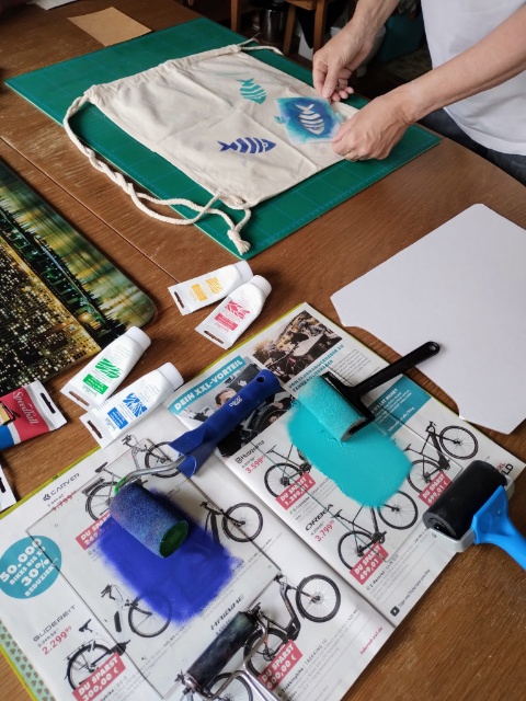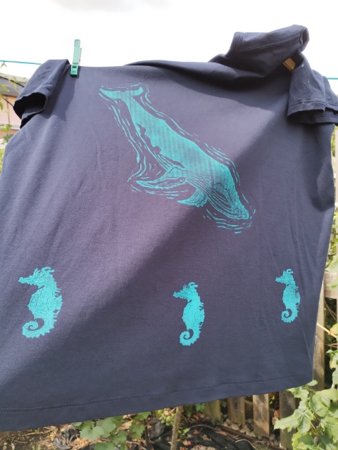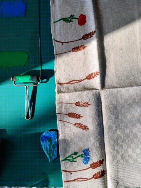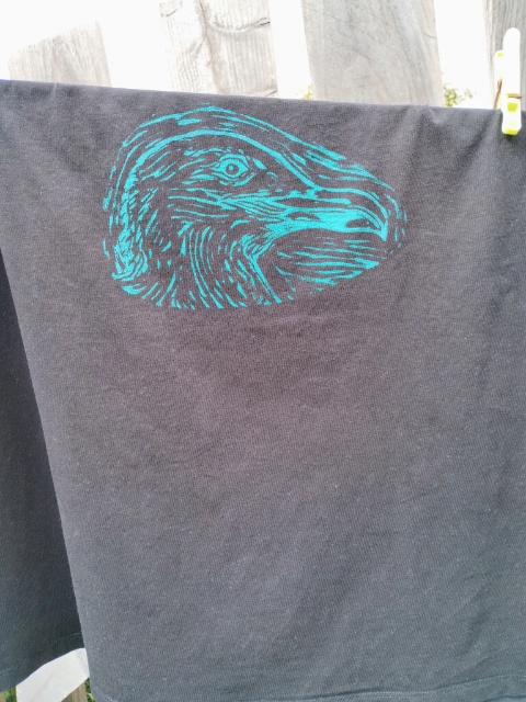 Zu Weihnachten gab es hier noch (Bingo, auf die letzte Minute und Upcycling und Weihnachtsgeschenk) bedruckte Shirts und alte Geschirr Tücher mit dem Göttervogel. Zwar hatte ich den Vogel schon am 2. Adventswochenende fertig geschnitzt, aber das Drucken ohne gesehen zu werden, gestaltete sich schwierig.