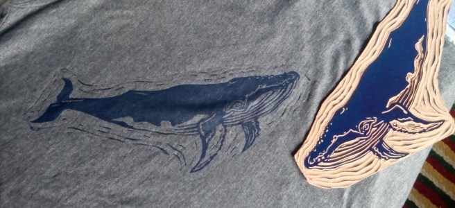 Für ein Geburtstagsgeschenk wollte ich einen Buckelwal auf ein T Shirt drucken. Aus meiner Tube Stoffdruckfarbe habe ich tatsächlich noch einen letzten ausreichenden Rest gedrückt. Das Bilderbuch ist übrigens eine bezaubernde Geschichte von einer kleinen Schnecke, die gerne die Welt sehen möchte und die dann ein Wal mitnimmt. (Axel Scheffler hat den tollen Wal gezeichnet, kennt Ihr sichr vom Grüffelo. Julia Donaldson hat die zauberhafte Geschichte geschrieben.) Entdeckt Ihr die kleine Schnecke?
