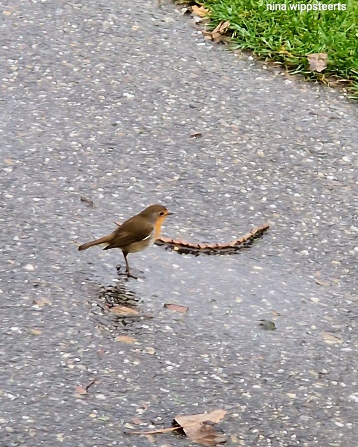 Vom Fenster des Chalets (NL) aus konnte ich auch nach dem Regen den Rotkehlchen zusehen. (Leider etwas unscharf wg dem Glas)