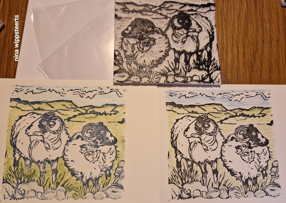 die Farbe muss noch länger trocknen, überall hängt etwas 😄 und ein Stapel Karten und Lesezeichen liegen bereit zum Sortieren. Etwas Brandmalerei kommt noch
