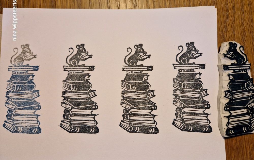 Erste Probedrucke: mit einem Acryl Block kann man wirklich besser arbeiten, wenn der Stempel ganz dünn ist.