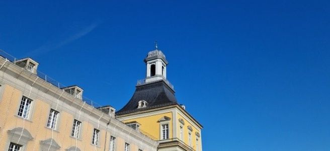 Bonner Universität in Gelb und Grau und bei strahlendem Himmel