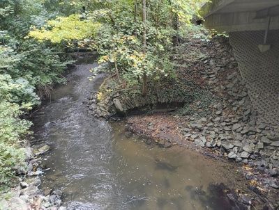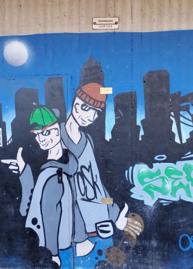 Vom Museum aus geht man ein paar Meter, auch an der Düssel entlang: