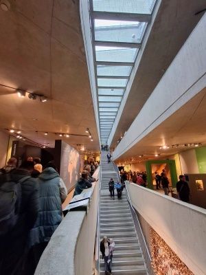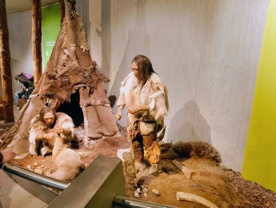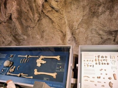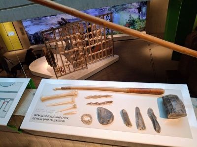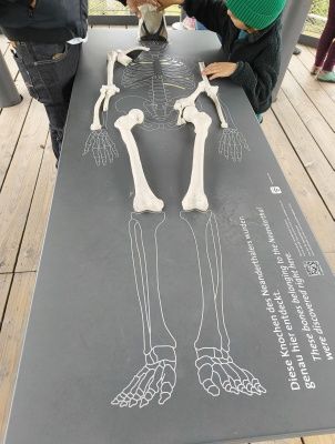 Es wird auch viel zur Geschichte rund um die Funde selber und ihre Einsortierung in die Wissenschaft und unsere Vergangenheit erzählt. Ein Audioguide (Kopfhörer für das eigene Handy) ist hilfreich, vor allem, wenn es so voll ist wie an dem Tag, oder wenn man noch auf den Hund achten muss. Übrigens hat das im Museum sehr gut mit all den Hunden geklappt. Es gab nur einen, den man immer mal wieder hörte. Alle anderen (viele nutzen das Angebot) vertrugen sich sehr gut.