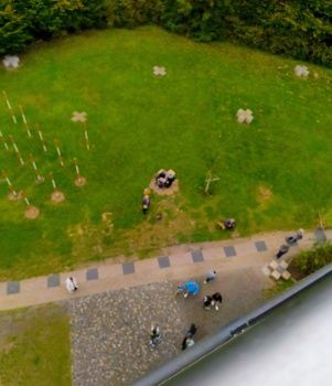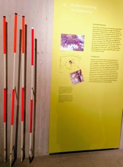 Und da sieht man den Fundort und die Fluchtstäbe wieder, welche genau die Ausgrabungsstätte anzeigen.