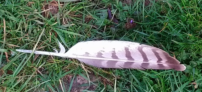 Der Bussard ließ netterweise eine Feder für mich liegen, ein sehr schönes Ostergeschenk