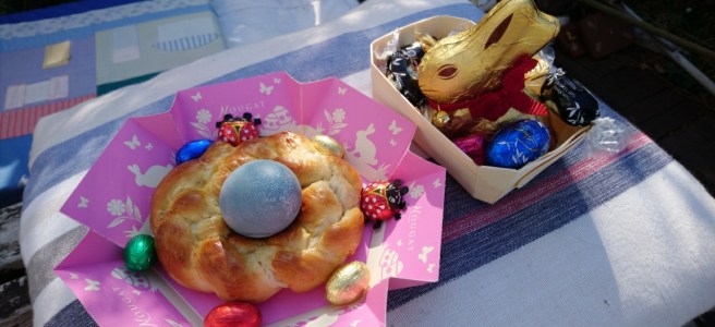Dann räume ich den Tisch frei, der Grosse möchte Scones für das Frühstück machen. Osterfrühstück, noch ist alles wie immer. Normalerweise würden wir uns nach dem Suchen der Ostereier auf den Weg zur Verwandschaft machen.