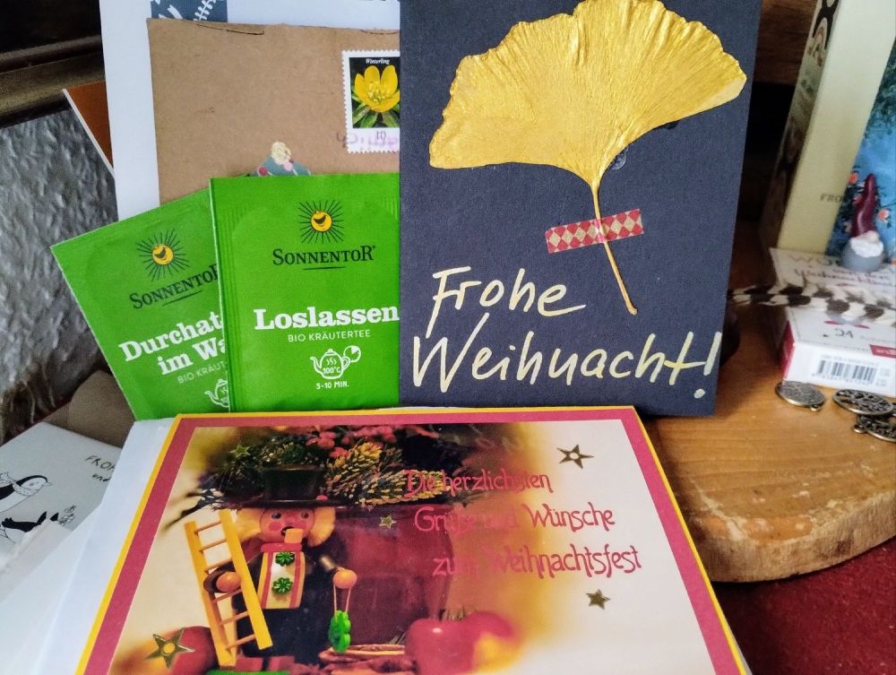 Natürlich war der Monat um die Feiertage gut gefüllt. Backen, basteln, Kranke mit Tee nerven, genug Haushalt und Alltag, wenig Sonne (die Tage mit aber besonders schön!) und viel Regen, einem wunderschönen Adventskaffee hier mit Freundinnen und der größeren Adventsfeier der Senioren, das SSÜP mit einer tollen Überraschung und selbiges Päckchen ging dann an Undine weiter und bestimmt findet auch sie etwas darin. Ganz viele wunderbare Weihnachtspost und -überraschungen! Und einfach ganz viele wunderbare Menschen um mich herum. Da habe ich sehr den Geist der Weihnacht gespürt! Meine Friertage wurde dann sehr ruhig, da mein Körper der Meinung war, in der kurzen Ruhephase passe jetzt doch genau noch ein Infekt. Kein Wunder, so wie ich kurz vor Weihnachten in den Läden angehustet und -geschnieft worden war. Knoblauch und andere Hausmittel verhalfen zu einer Besserung. Aber die Familie fuhr alleine zu den Weihnachtsbesuchen (und das fand ich sehr traurig, habe aber erfolgreich gegen den Grinch in mir gekämpft, Bingo)