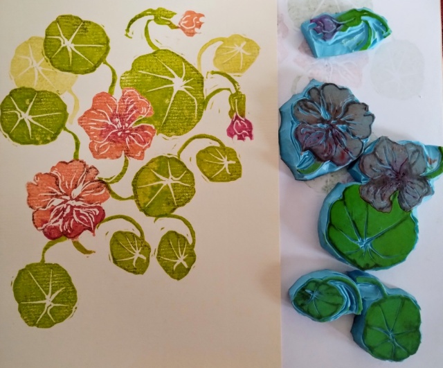 Aber ich gestehe, leichter ist mir dieses Motiv gefallen. Einfach, weil es ein „warmes, buntes“ ist. Die Kapuziner Kresse kann auch etwas flexibel angeordnet werden.