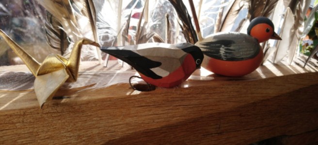 Wärend mir die Sonne durch das Südfenster auf den „steifen Buckel“ scheint, habe ich endlich mal wieder Ruhe und Lust, einen Stempel zu schnitzen. Einen Winterfuchs habe ich in Groß gemacht, der wird sicher noch auf dem ein oder anderen Shirt oder Tasche oder… landen. Außerdem habe ich für meinen nächsten Vogel für das Jahresprojekt recherchiert und eine Liste möglicher Kanidaten aufgestellt. Ich möchte eher auch unbekanntere Vögel vorstellen, kreativ umsetzen. Nicht 100% überzeugt bin ich von meinem Schafskopf. (Das Motiv als Idee ist nicht auf meinem Mist gewachsen, aber ich weiss leider auch nicht mehr, wo ich es gesehen habe) Der Dompfaff Stempel hat auch eine neue Heimat gefunden.