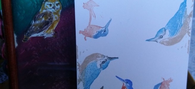 Natürlich habe ich noch mal geschnitzt. Zweiteilig ist das freche Rotkehlchen dann doch nicht geworden. Anhand der Fotos seht Ihr vielleicht warum. Buntstifte gehen besser. Maike hat mir dann auch erklärt, dass mir simpel Ansatzpunkte fehlen, die von der anderen Seite überall Fixpunkt zum Druck geben. Aber irgendwie gefällt es auch nicht recht, zu krass der Kontrast der Farben. (Bei Maike sieht das viel besser aus und ich hoffe, sie zeigt das mal wieder auf dem Blog. Oder sogar mehr A?)