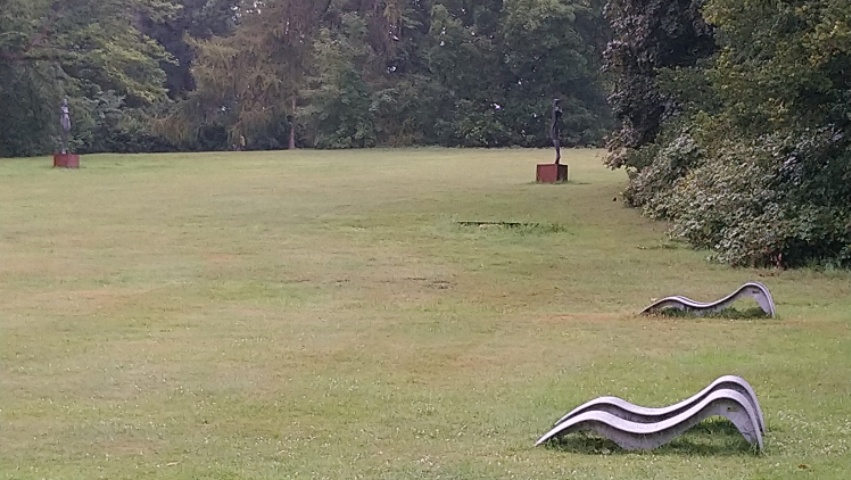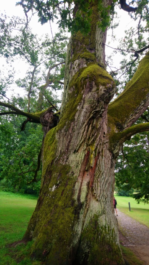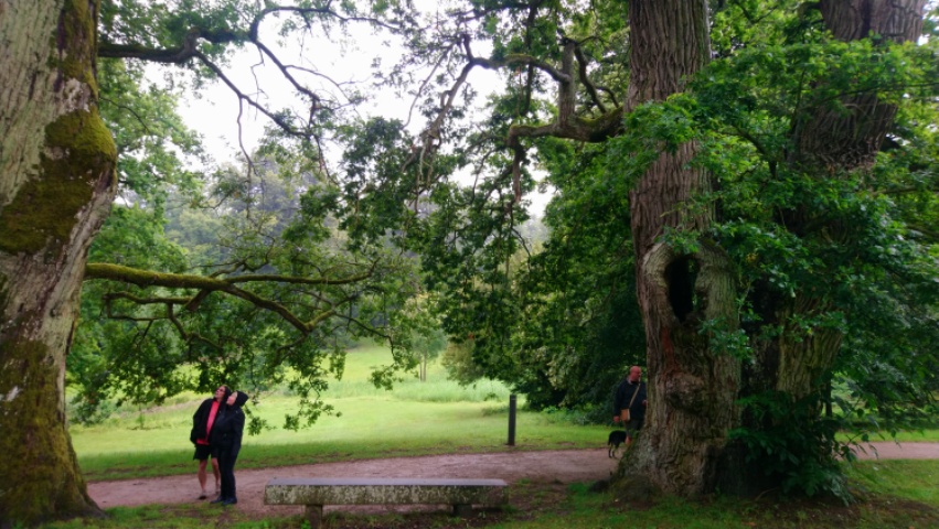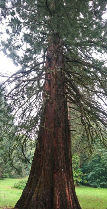 Aber besonders beeindruckt hat uns der wunderschöne Park. Trotz Regen ließen wir es uns nicht nehmen, unter grossen alten Bäumen zu laufen, zu erkunden, wo das alte Schloss gestanden hatte, dort auf den Schloßteich zu blicken und über wirklich beeindruckende Mammutbäume zu staunen, die wir auch zu dritt nicht umfassen konnten.