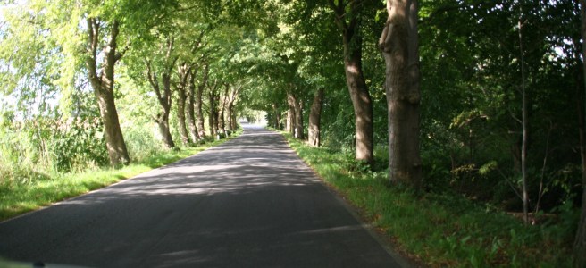 Auf dem Rückweg geht es durch grosse Felder und schöne, kleine Orte, an einem Künstleranwesen vorbei, Hügelgräber, Ausblicke…