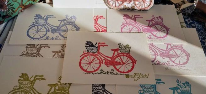 Zwei Bücher wurden vorgestellt, den Band aus der Naturkunden Reihe über den größten Uhu gibt es bis jetzt nur per Foto. Den angeschnitzten Fahrrad-Stempel habe ich erst diese Woche beenden können.