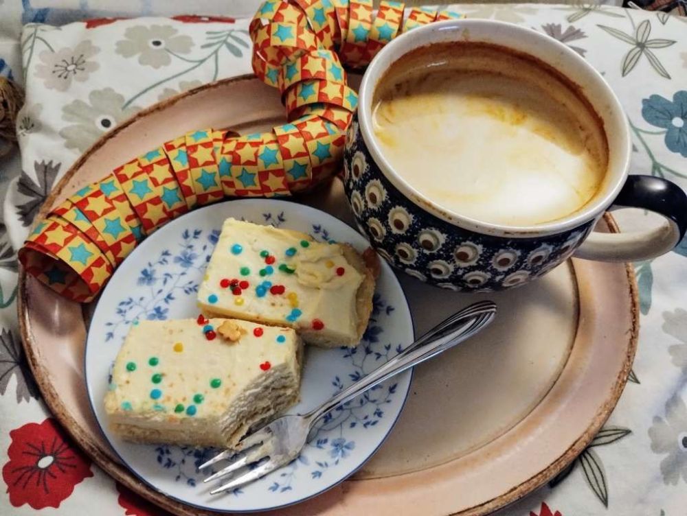 Konfetti Kuchen wurde gebacken, für den Seniorennachmittag, viel zu viel (bei dem ich nicht dabei war, nur etwas vorbereitet habe), vielleicht schreibe ich das Rührkuchen Rezept noch hier auf, aber es gibt auch unzählige Rezepte im Netz. Und was sonst, außer frischer Luft beim länger Lüften, den Frühling ins Haus holt, sind Blumen. Tulpen genauer gesagt: